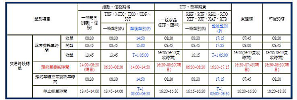 -- 預約單時間 (大台指 小台指 個股期權 ETF 匯率期貨 東證期貨 印度50期貨) --